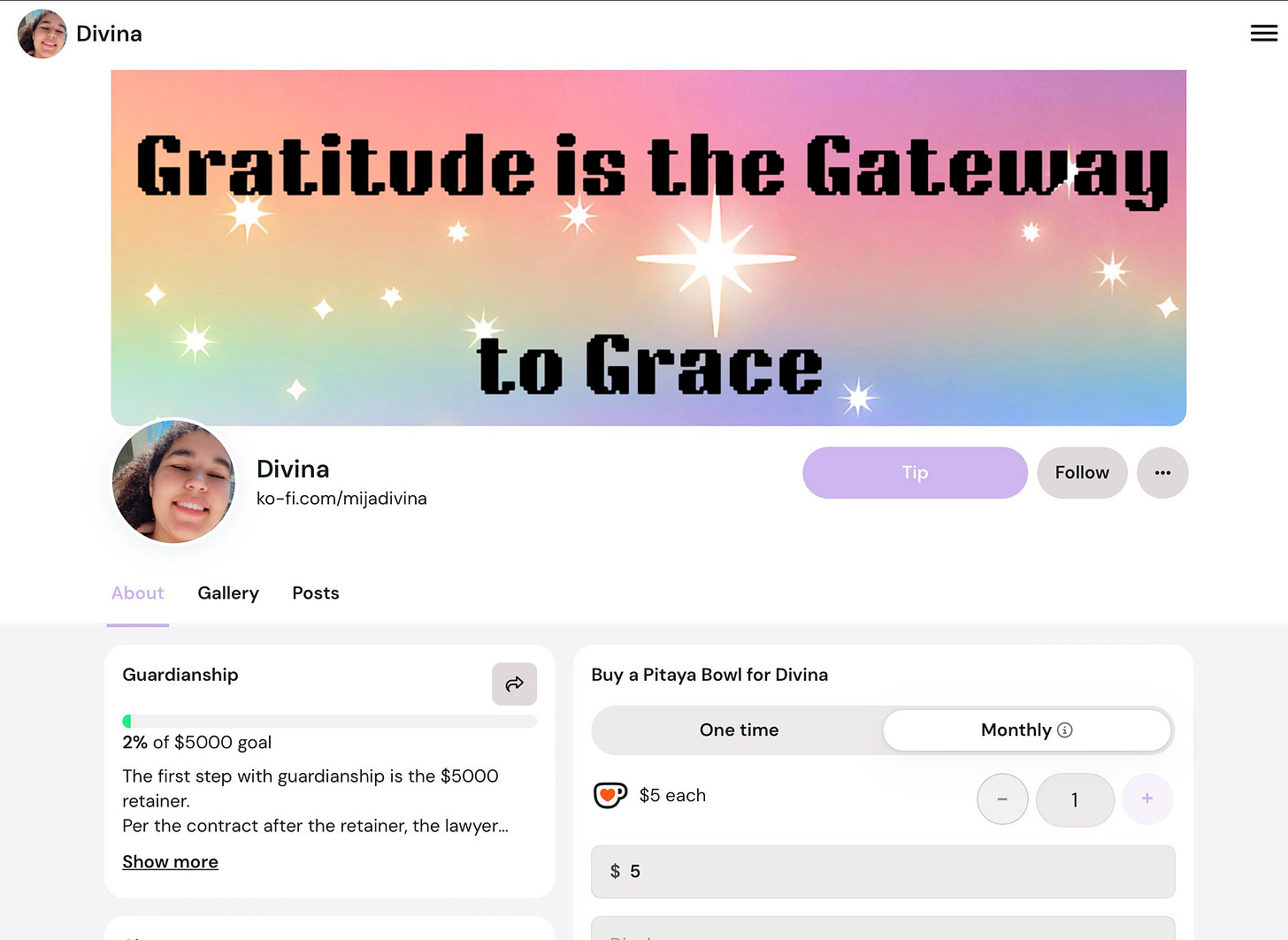 Last but not least, we use Ko-Fi for donation goals to help with the expenses of setting up and maintaining the Guardianship. This is a lifelong relationship between Divina & me, the family court, the court’s capacity committee, & the attorney’s that represent both of us. Fun times for sure.